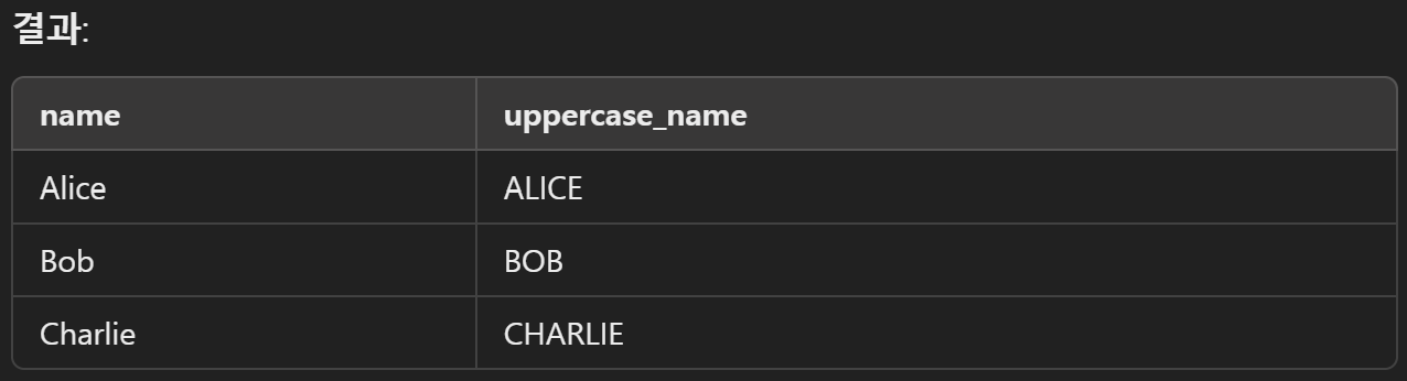 - string_column: 대문자로 변환할 문자열 열 또는 텍스트.