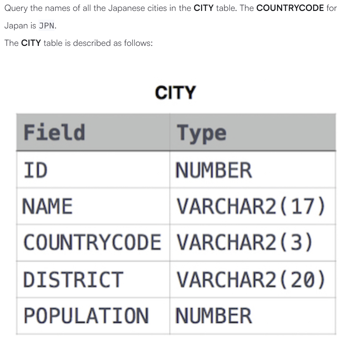 WHERE COUNTRYCODE = 'JPN';'SQL > 문제풀이' 카테고리의 다른 글