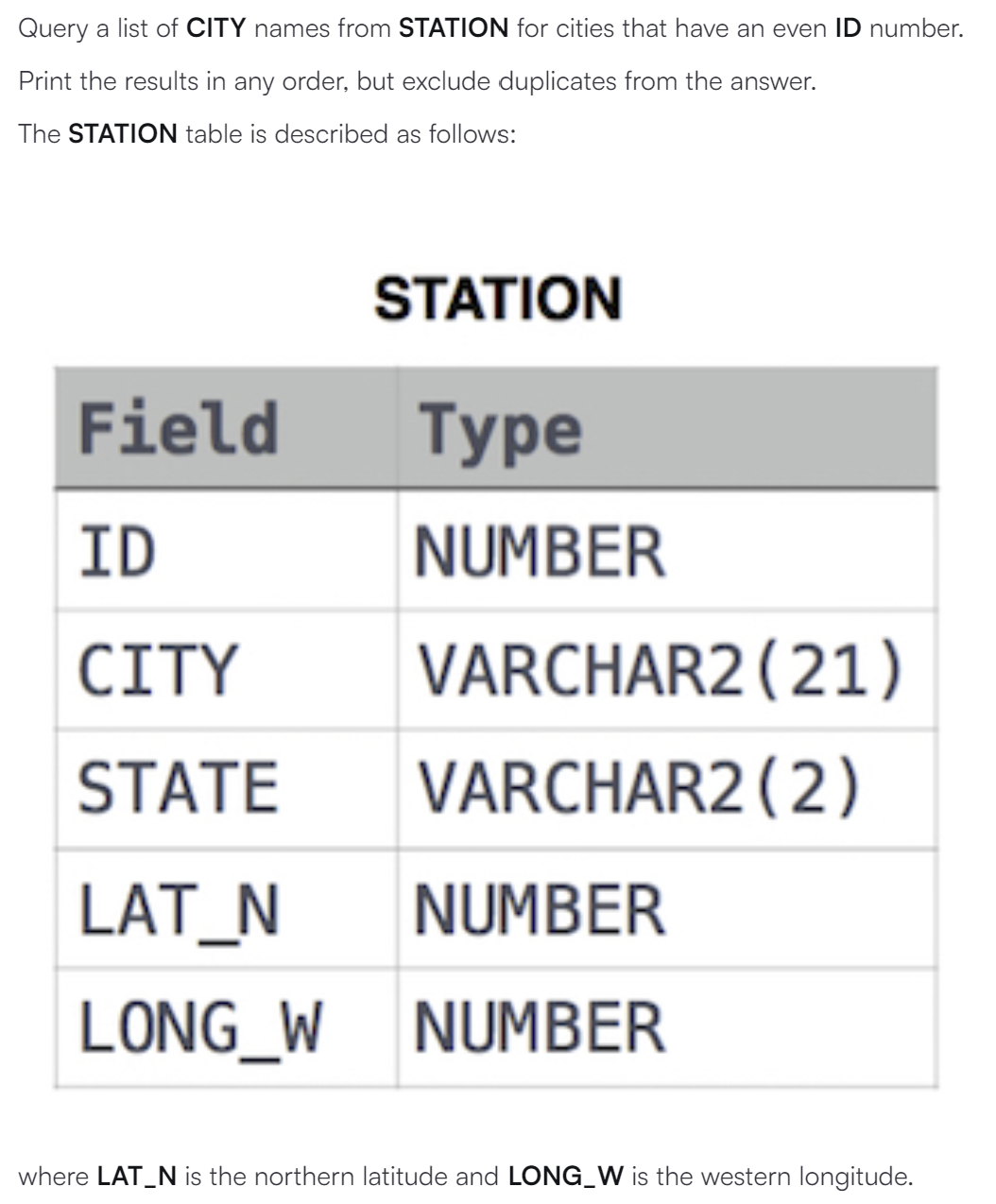 Weather Observation Station 3 _ Easy. HackerRank 본문