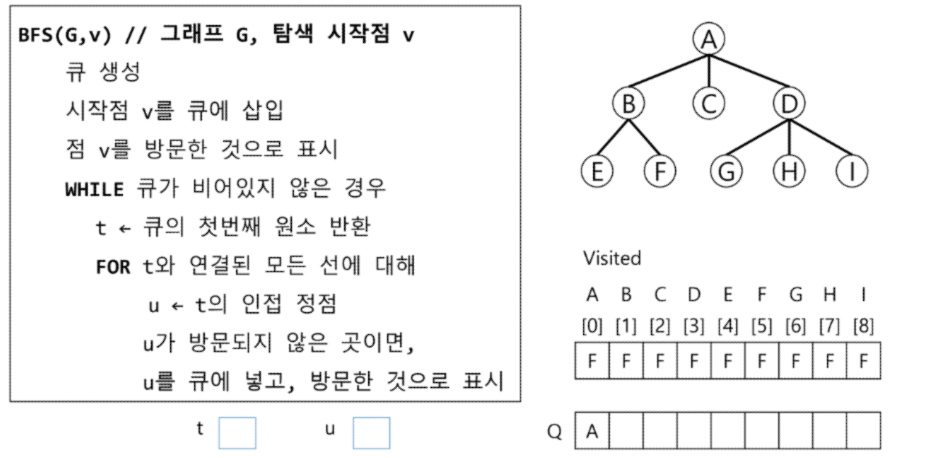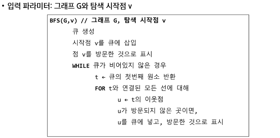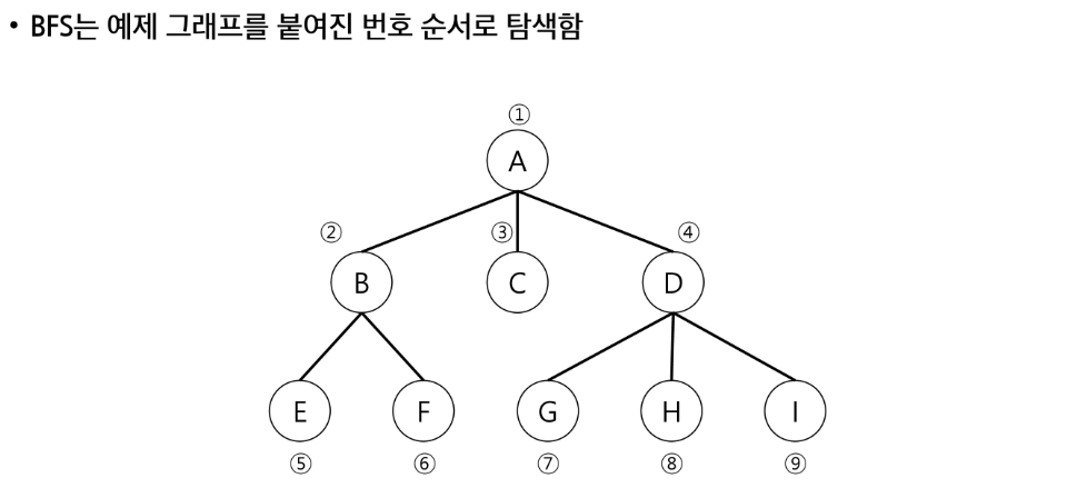 - 인접한 정점들에 대해 탐색을 한 후, 차례로 다시 너비우선탐색을 진행해야 하므로, 선입선출 형태의 자료구조인 큐를 활용합니다.