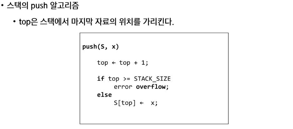 - 물건을 쌓아 올리듯 자료를 쌓아 올린 형태의 자료구조입니다.